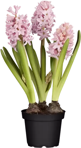 Die glänzend grünen Laubblätter sind schmal und streifenartig und erscheinen zusammen mit den Blüten. Die zahlreichen Blüten stehen in traubigen Blütenständen zusammen und verströmen einen süßlichen Duft. Je nach Sorte sind die Blüten blau, rosa, lila oder weiß gefärbt. Hyazinthen bevorzugen einen Platz im Garten oder einen kühleren Platz in der Wohnung.