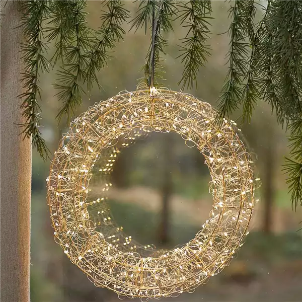 Mit LED-Kerzen müssen Sie sich keine Sorgen um die Brandgefahr machen. In den Trendfarben Weiß und Grün können Sie Ihrer Umgebung unkompliziert eine 'Mistletoe Kiss' Stimmung verleihen. Der champagnerfarbene LED-Kranz gibt jedem Fenster einen modernen Glanz. Seine 200 LEDs sind schon von weitem zu erkennen. Nicht nur in der Weihnachtszeit, auch darüber hinaus können Sie diesen besonderen Kranz leuchten lassen.
