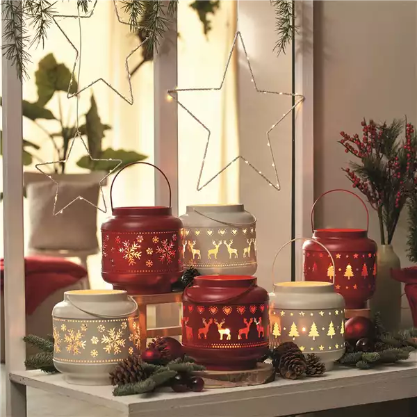 Mit den passenden Lichtern wird es in 'Santa’s House' erst richtig gemütlich. Die LED-Sterne in unterschiedlichen Größen leuchten dank Timerfunktionen zu jeder gewünschten Tages- und Nachtzeit. Kleine Laternen mit verschiedenen Motiven in Rot und Weiß sorgen einzeln platziert oder in einer Gruppe aufgestellt für eine schöne, weihnachtliche Atmosphäre.