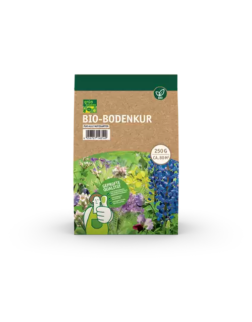 Die Gründüngung ist eine alt bewährte Methode zur Bodenverbesserung und Nährstoffbereitstellung für die Folgekultur. grün erleben BIO-BODENKUR ist eine vielfältige Mischung zur Bodenbedeckung und zur Erhaltung der natürlichen Bodengesundheit. Die BIO-BODENKUR verbessert den Humusgehalt des Bodens und dient Regenwürmern sowie anderen Bodenbewohnern lange als Futterquelle. Durch das schnelle Wachstum werden Unkräuter unterdrückt. Je nach Bodenbeschaffenheit können die einjährigen Pflanzen eine Höhe von ca. 100-120 cm erreichen.